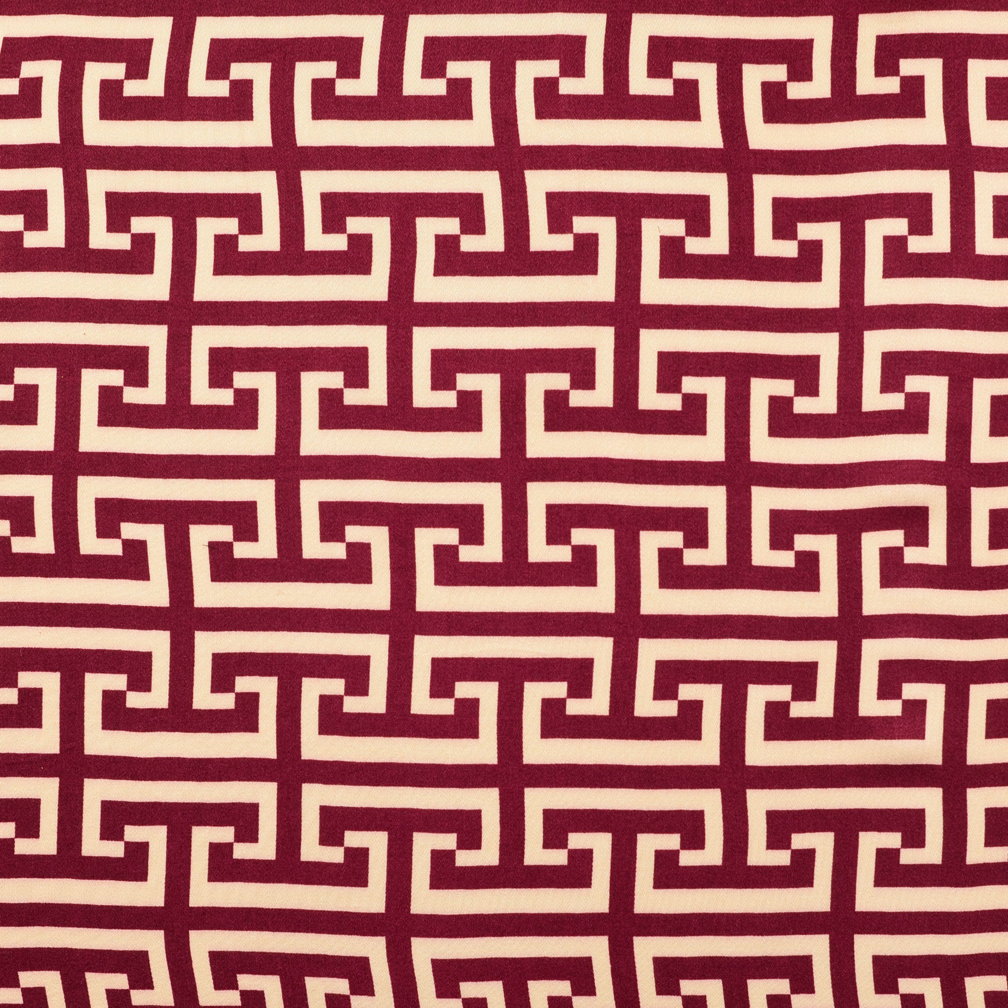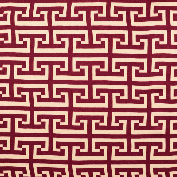 This "musthave" bordeaux printed viscose satin geometric pattern fabric (art.nr. 211931.0011) is part of our fashion fabrics collection. It has a width of 138 cm and weight of 100 g/m2.