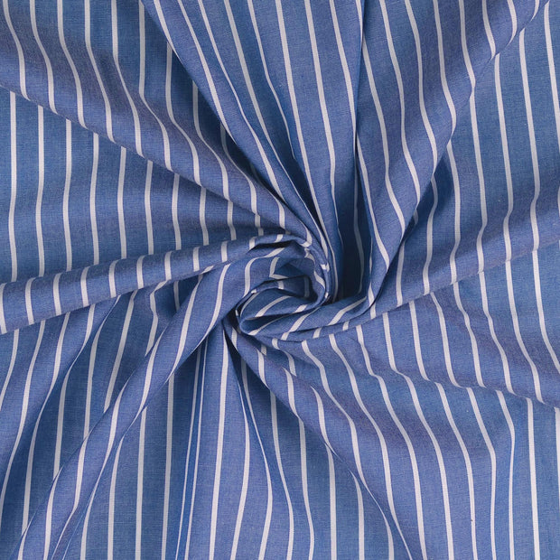 CO Popeline Stoff garngefärbt Streifen Jeans Blue