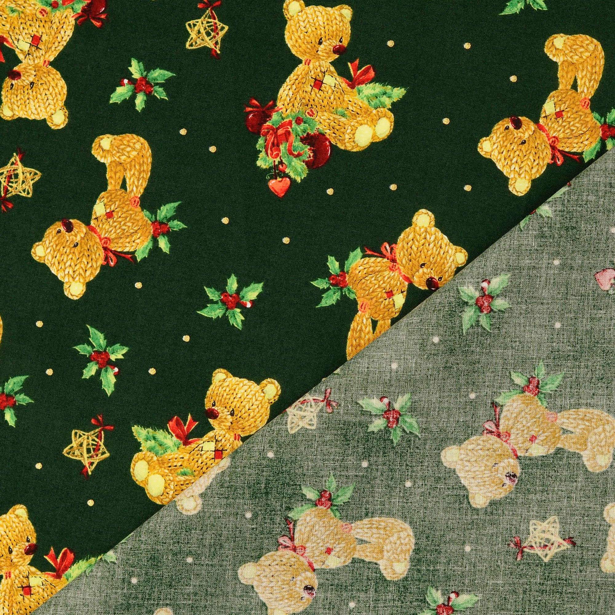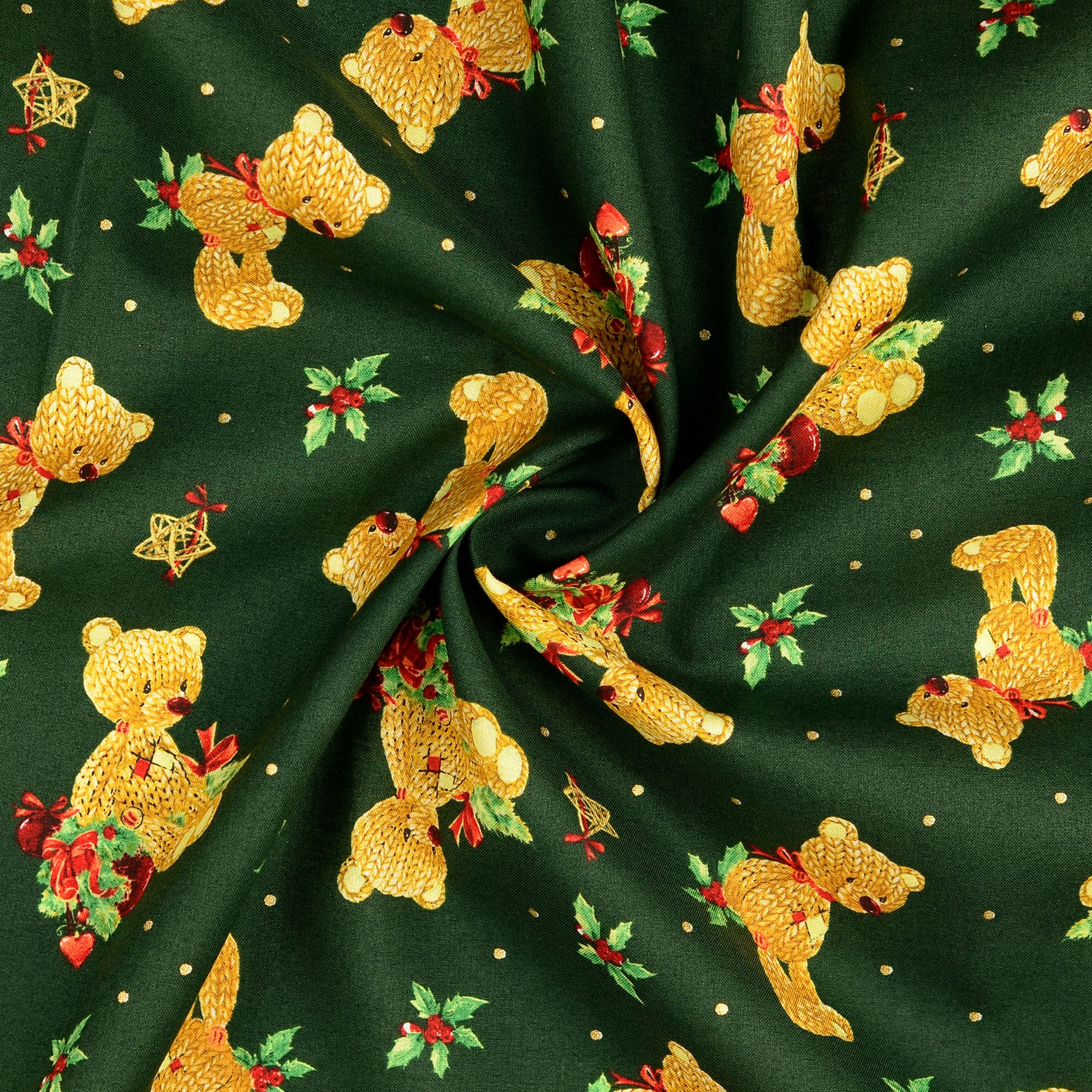 Co popeline Stoff bedruckt mit Bären-Motiv in der Farbe Grün (Artikel-Nr. 209503.0003), ist Teil unserer sale €1-2-Kollektion. Dieser Stoff hat eine Breite von 135 cm und ein Gewicht von 120 g/m2.