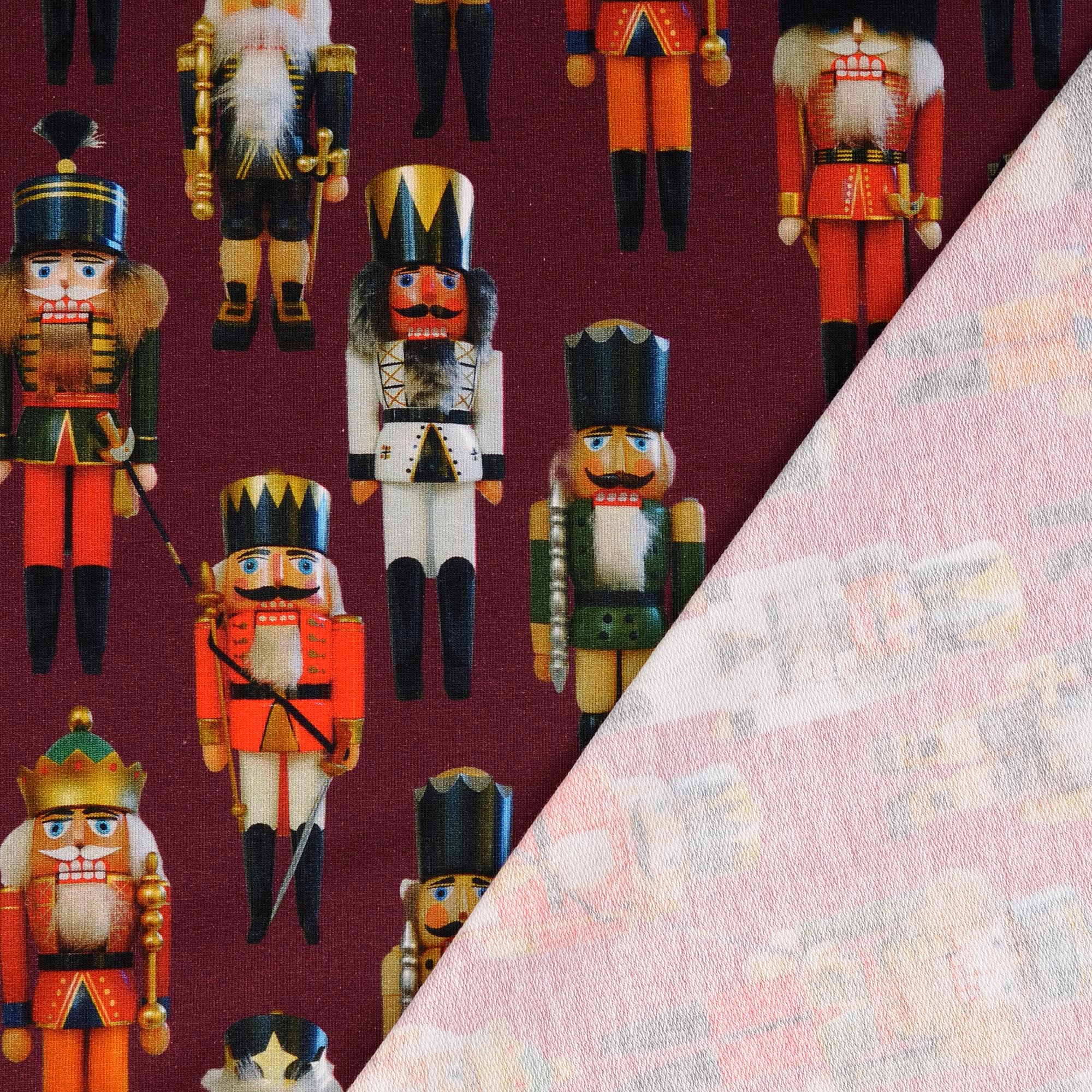 French terry geraut Stoff mit Weihnachten-Motiv in der Farbe Pflaume (Artikel-Nr. 211474.0004), ist Teil unserer Weihnachten-Kollektion. Dieser Stoff hat eine Breite von 145 cm und ein Gewicht von 240 g/m2.