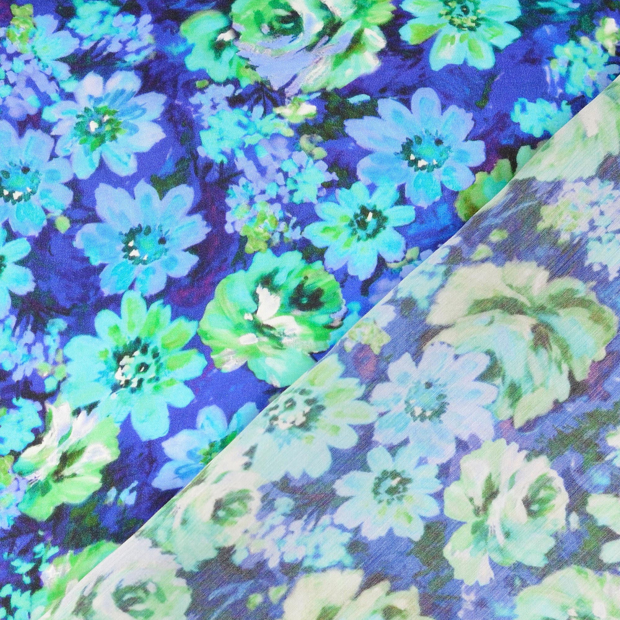 Satin Stoff mit Blumen-Motiv in der Farbe Königsblau (Artikel-Nr. 211669.0003), ist Teil unserer modestoffe-Kollektion. Dieser Stoff hat eine Breite von 138 cm und ein Gewicht von 95 g/m2.