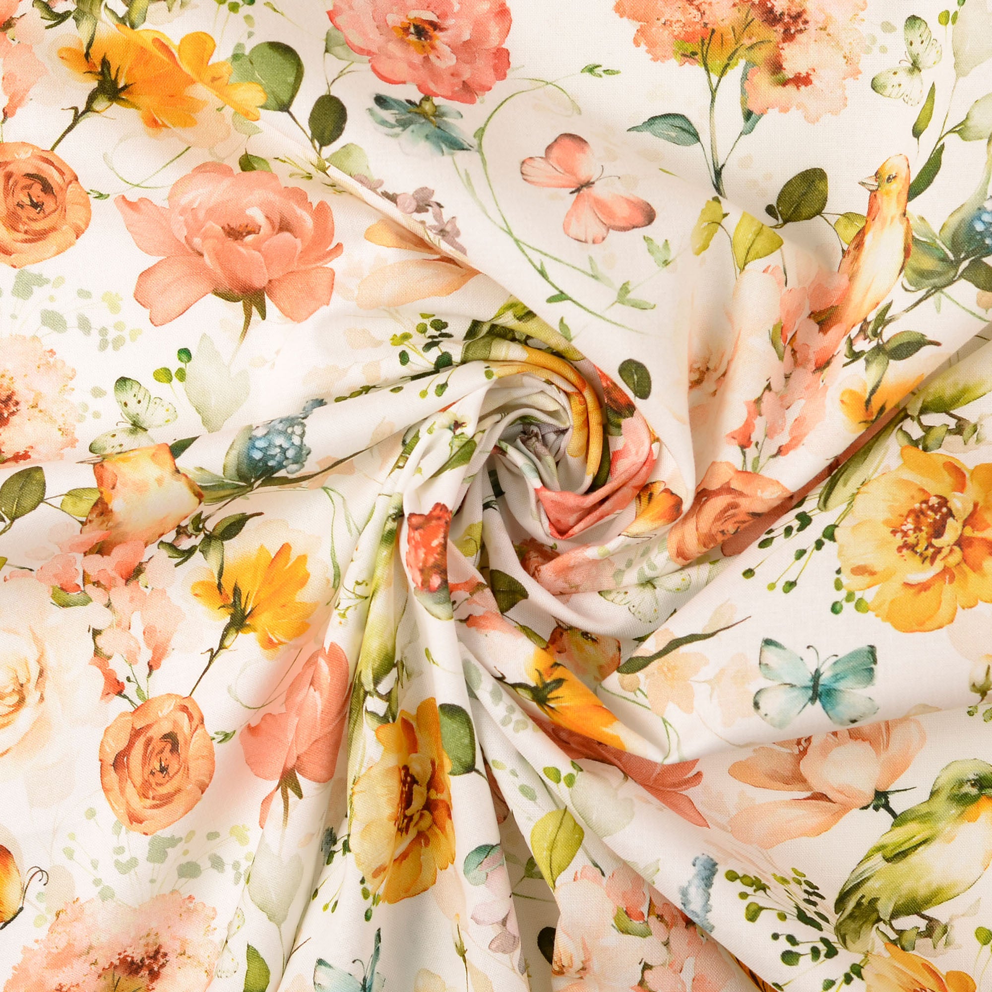 Fahnentuch Stoff digital bedruckt mit Blumen-Motiv in der Farbe Weiß (Artikel-Nr. 212375.0001), ist Teil unserer dekorationsstoffe-Kollektion. Dieser Stoff hat eine Breite von 142 cm und ein Gewicht von 145 g/m2.
