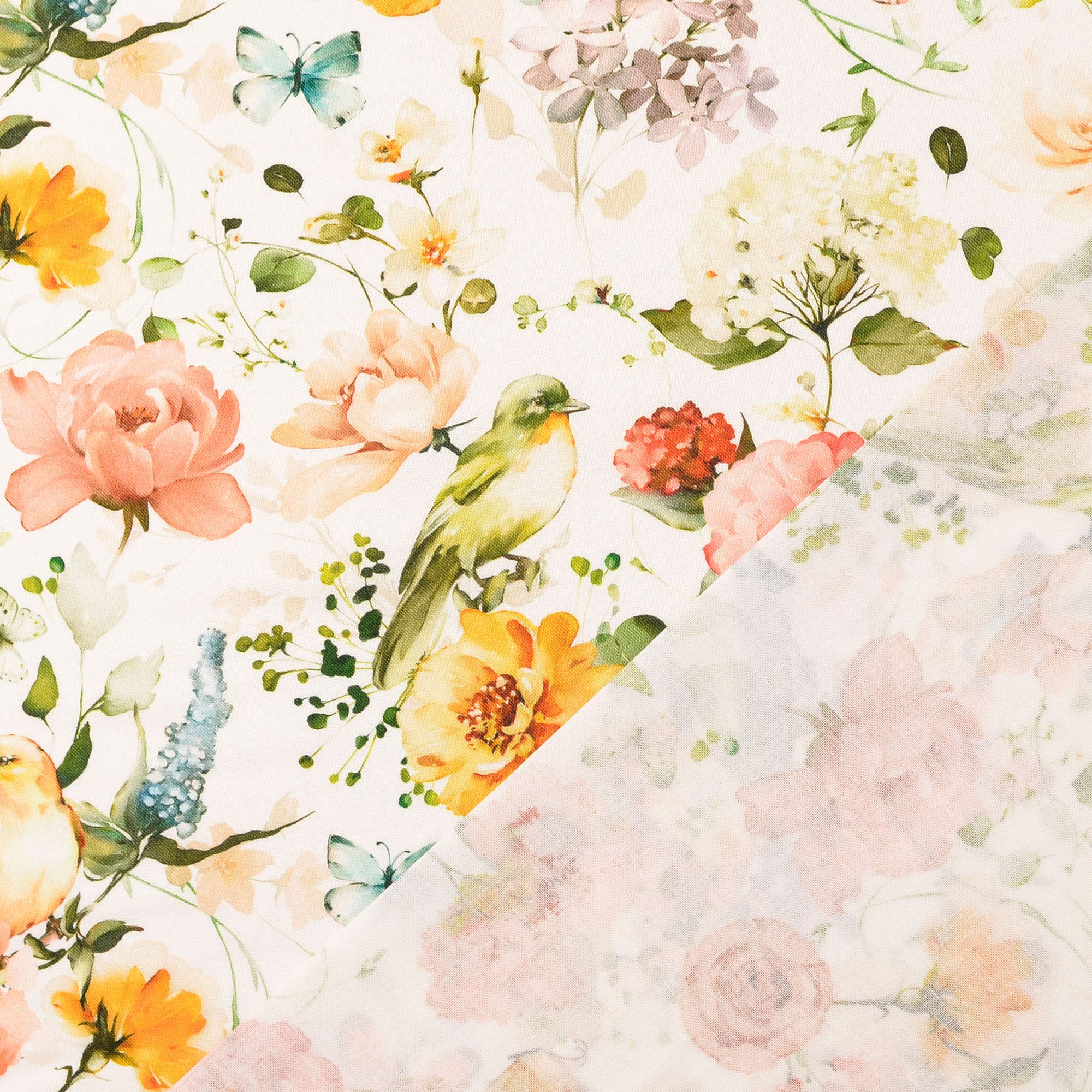 Fahnentuch Stoff digital bedruckt Blumen Weiß