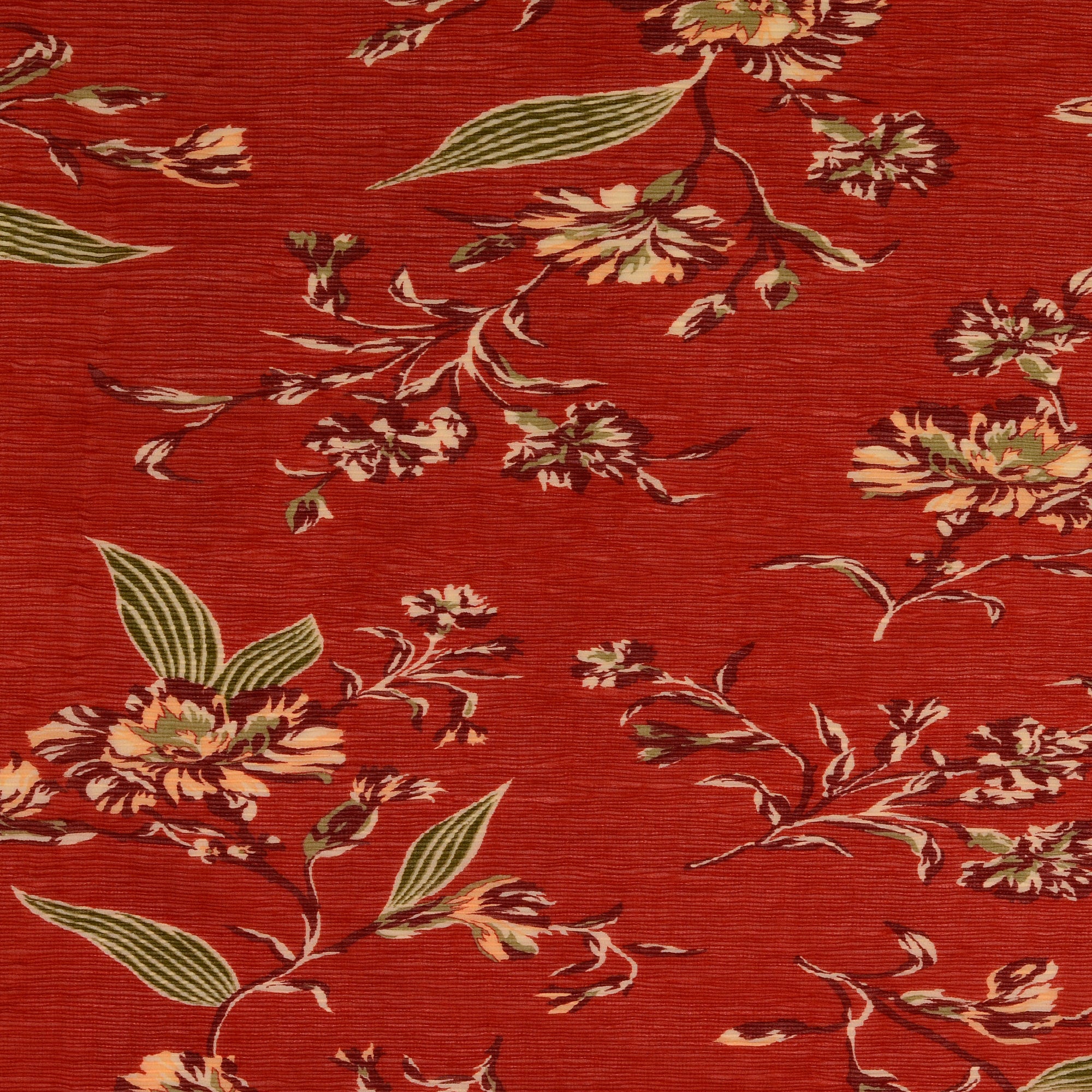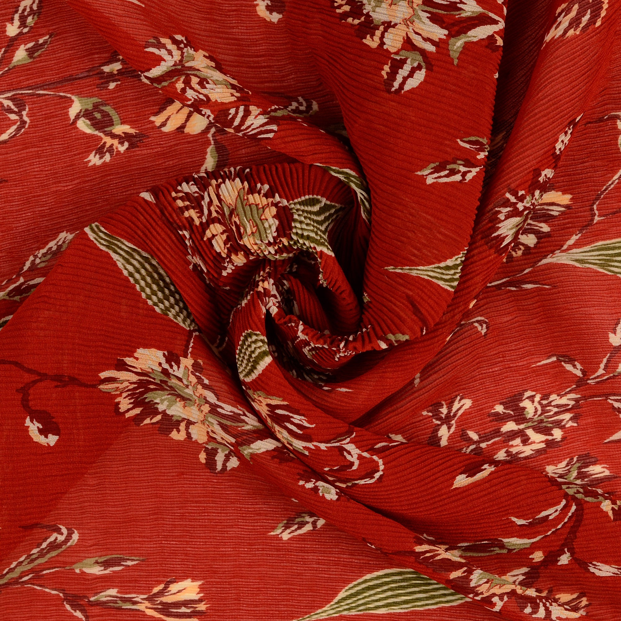 Chiffon tissu plissé fleurs Bordeaux