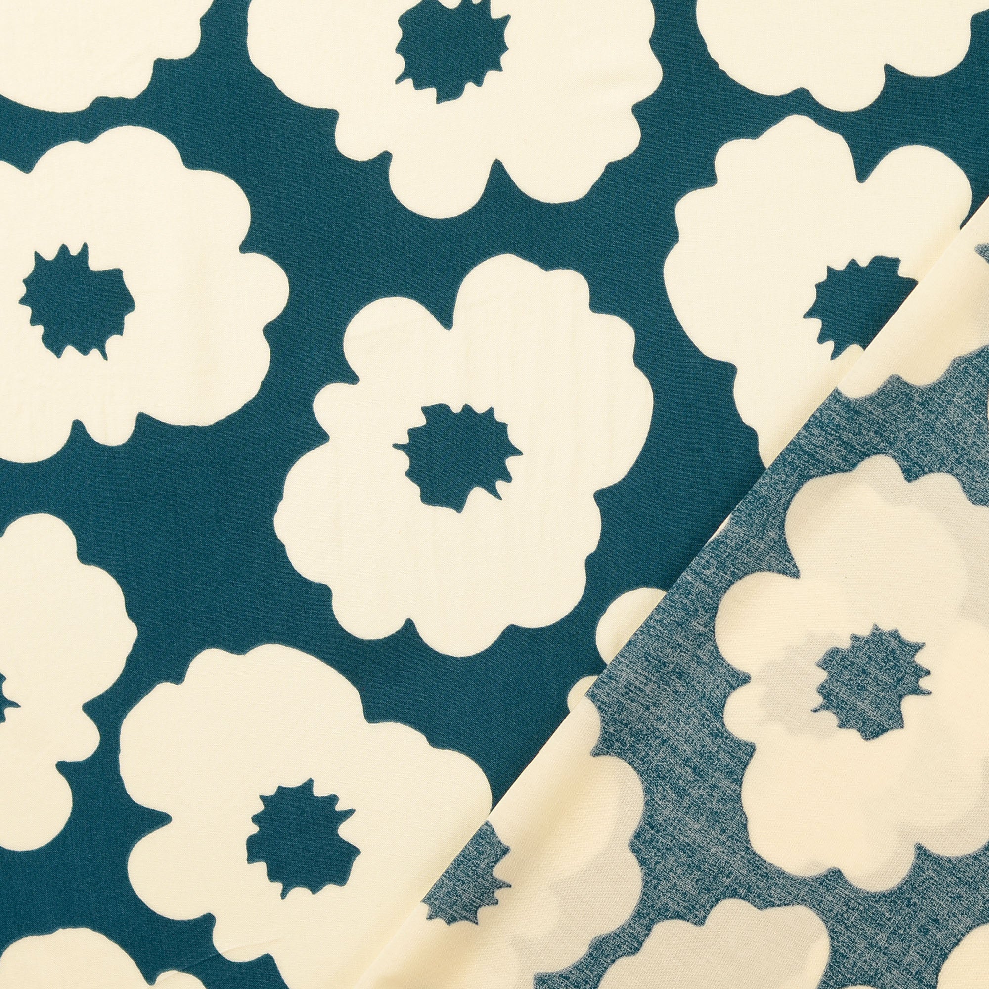 Popeline de Viscose tissu imprimé fleurs Bleu Canard