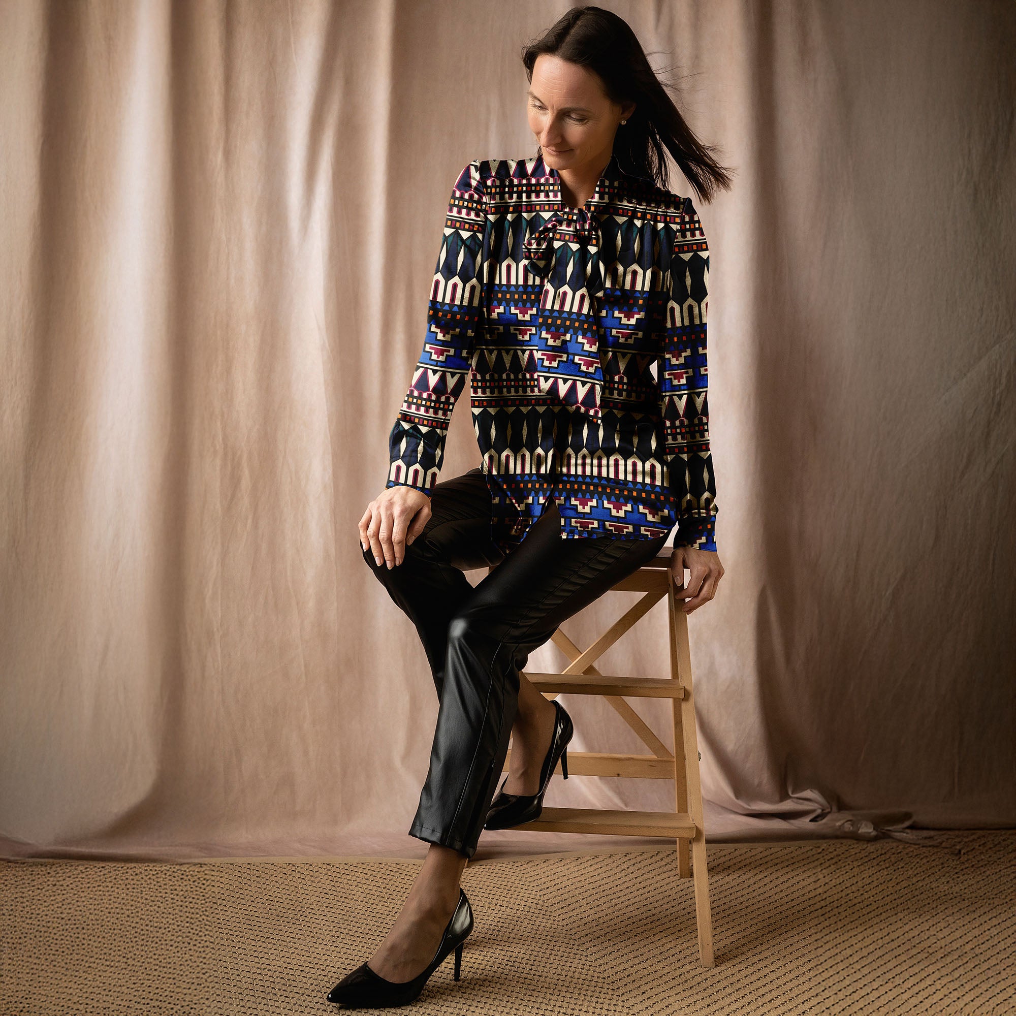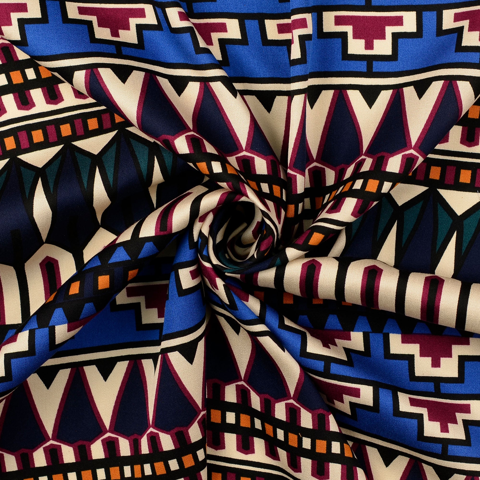 Viscose Satin tissu imprimé motifs géométriques Multicolore