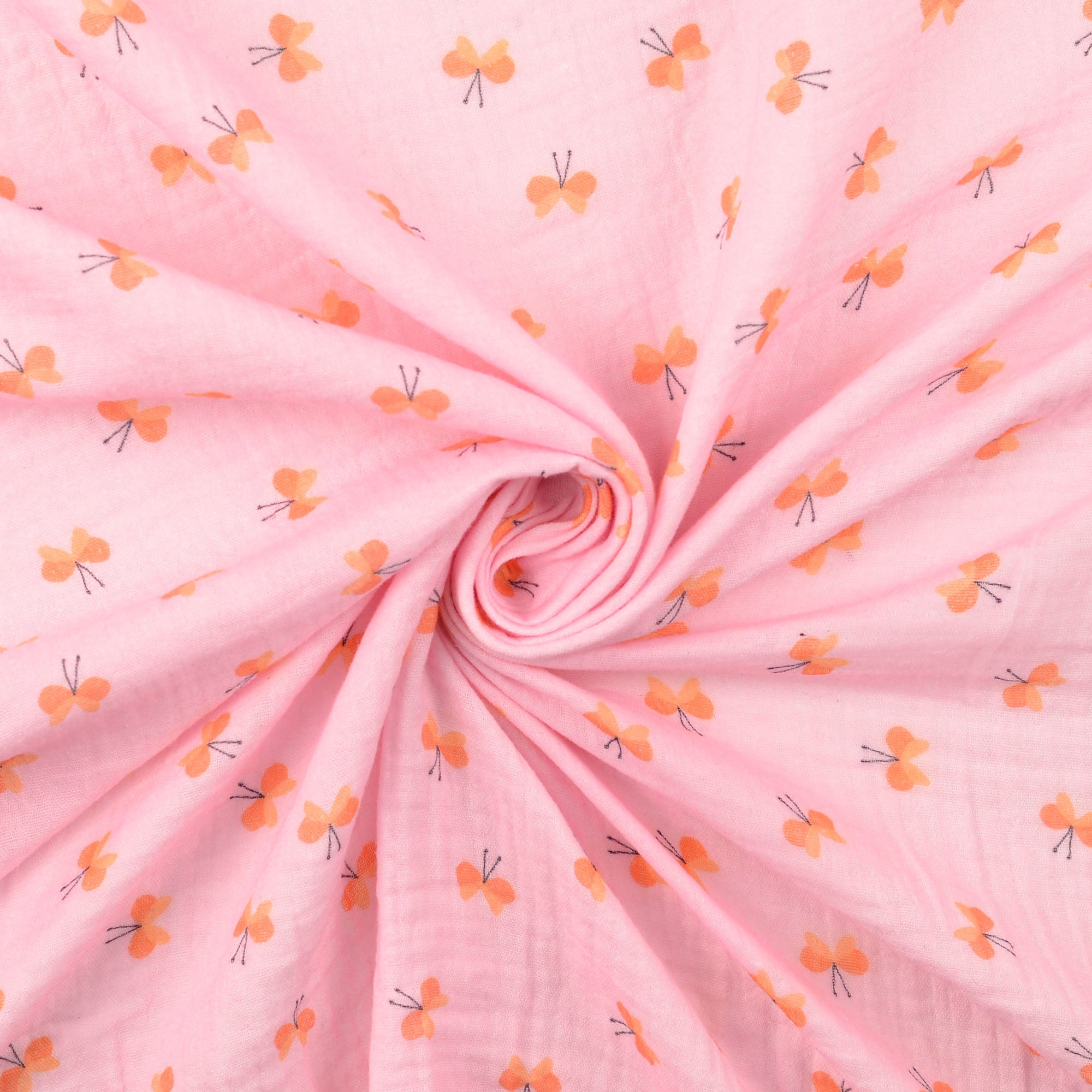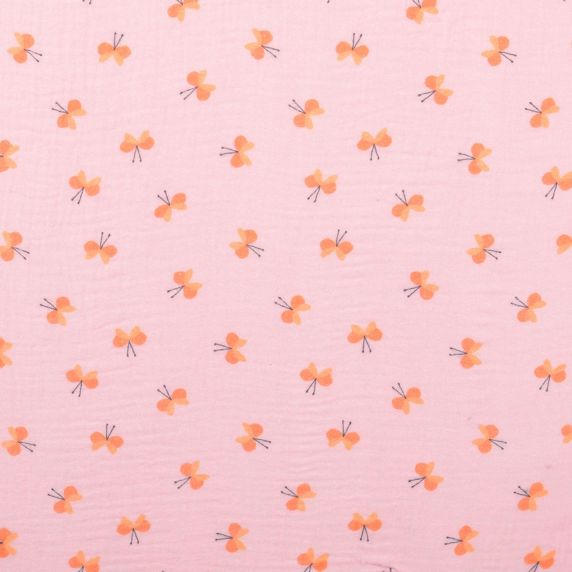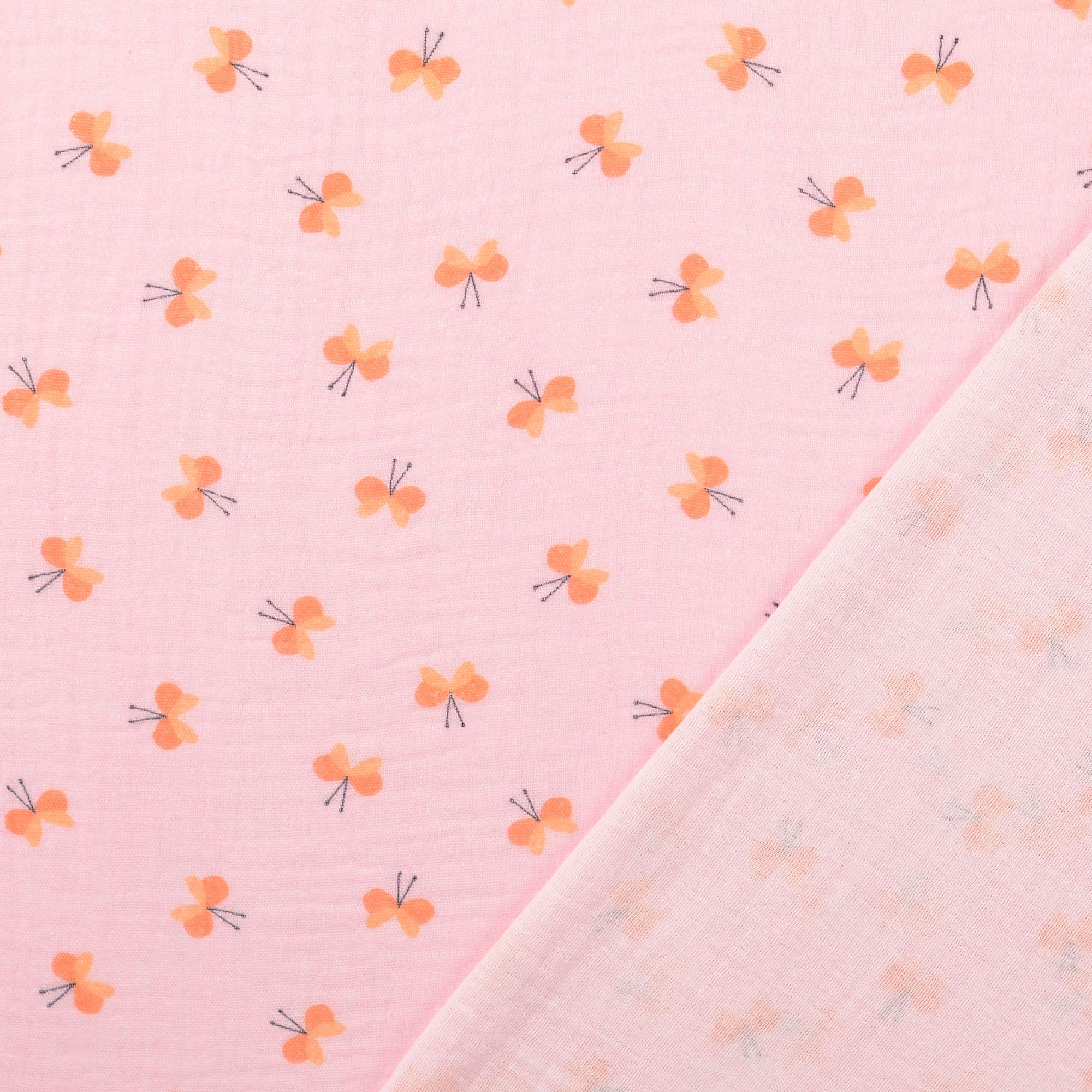 double gaze tissu imprimé digital papillons rose