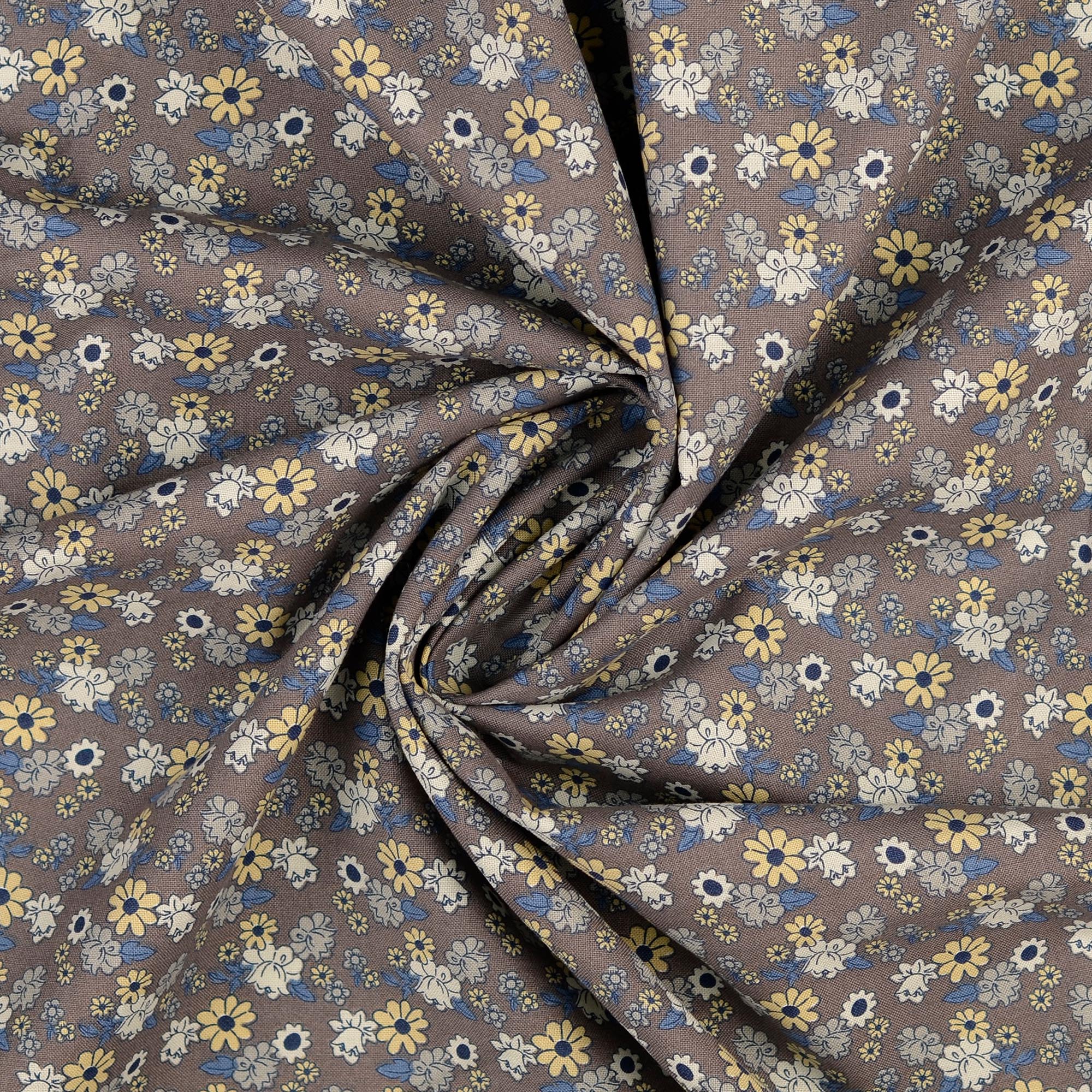 This "musthave" grey cotton poplin flowers fabric (art.nr. 210124.0011) is part of our sale €2-3 collection. It has a width of 145 cm and weight of 145 g/m2.