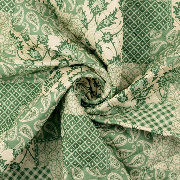 Cotton Poplin fabric bounded Paisley Dark Mint